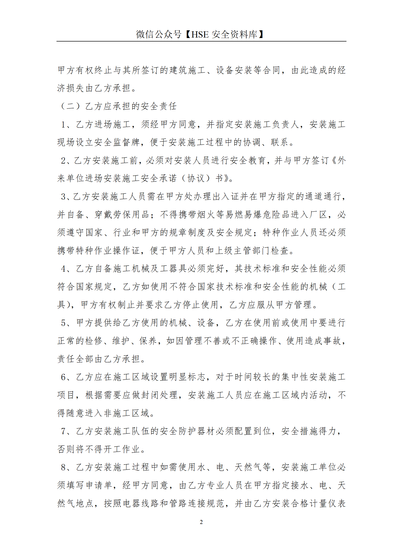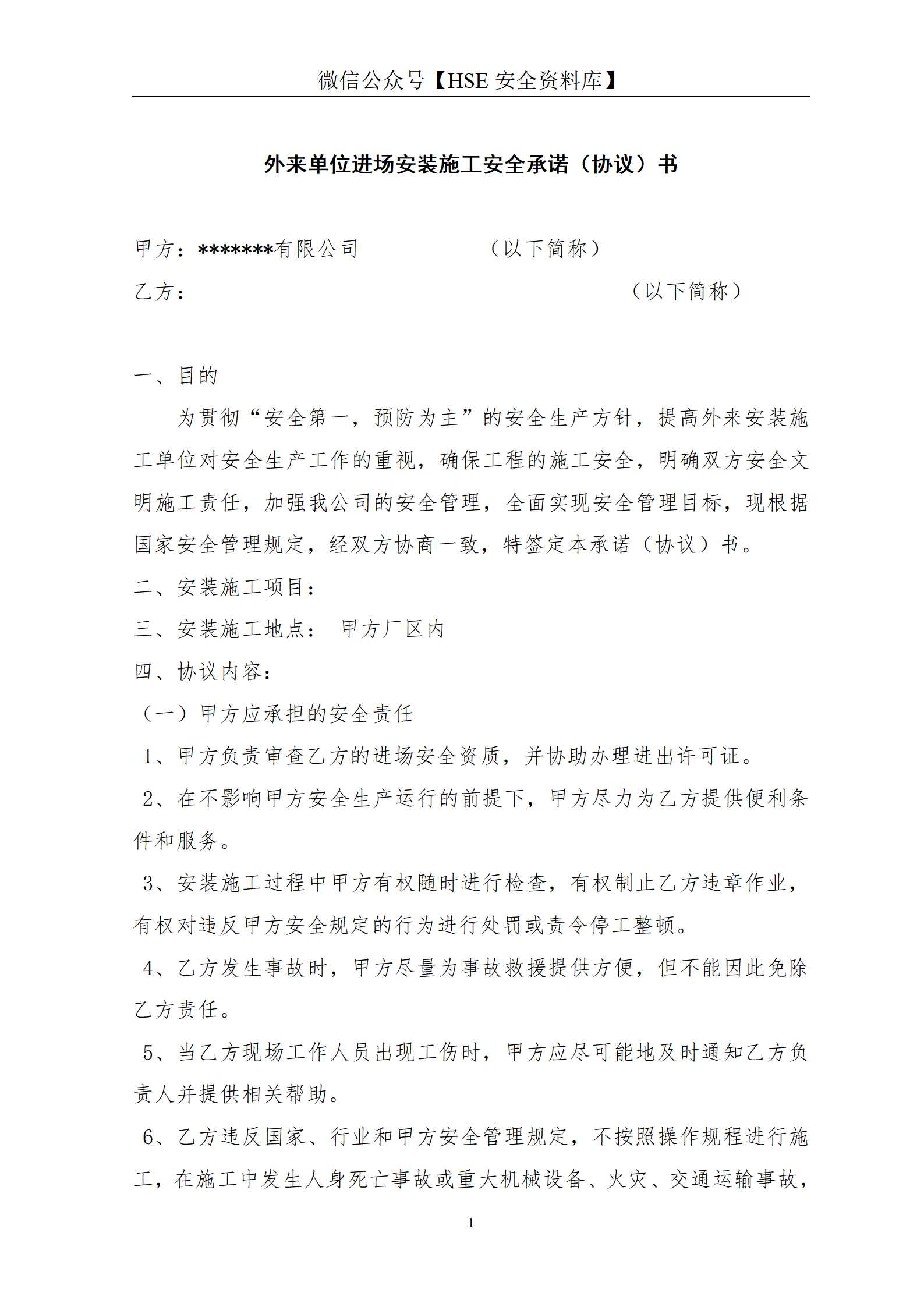 外来单位进场安装施工安全承诺(协议)书(13页)