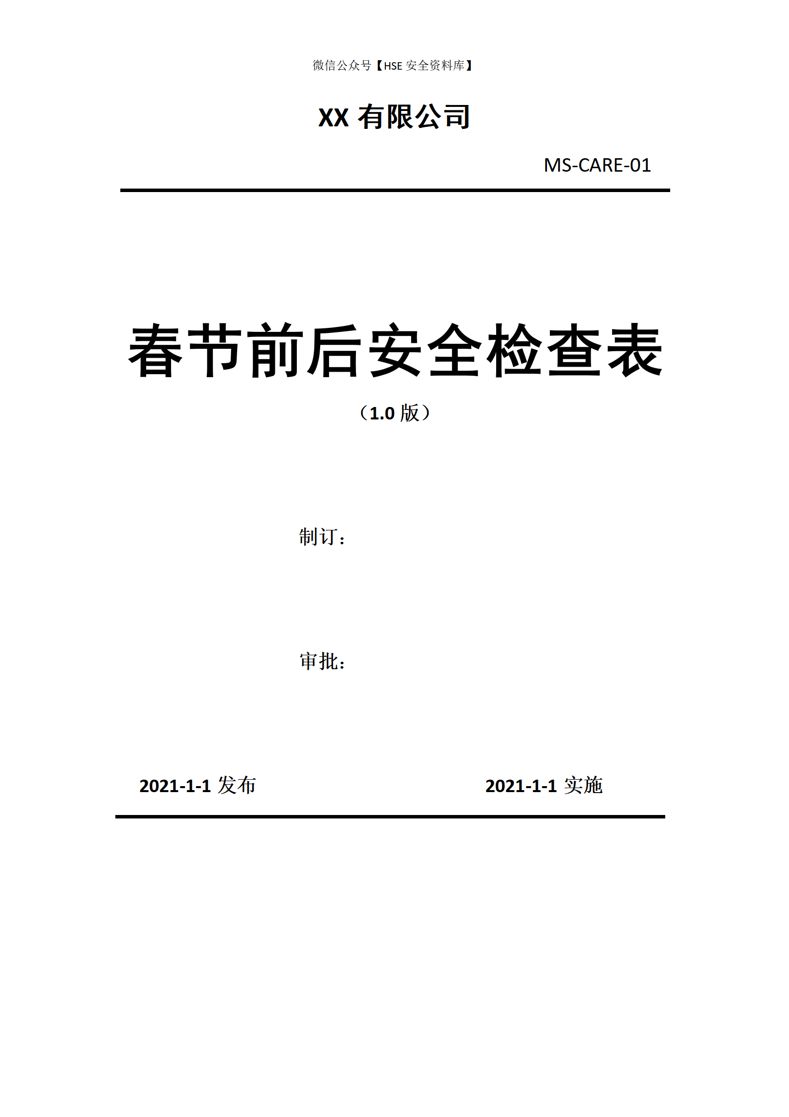 节前安全检查表---春节安全检查表.doc