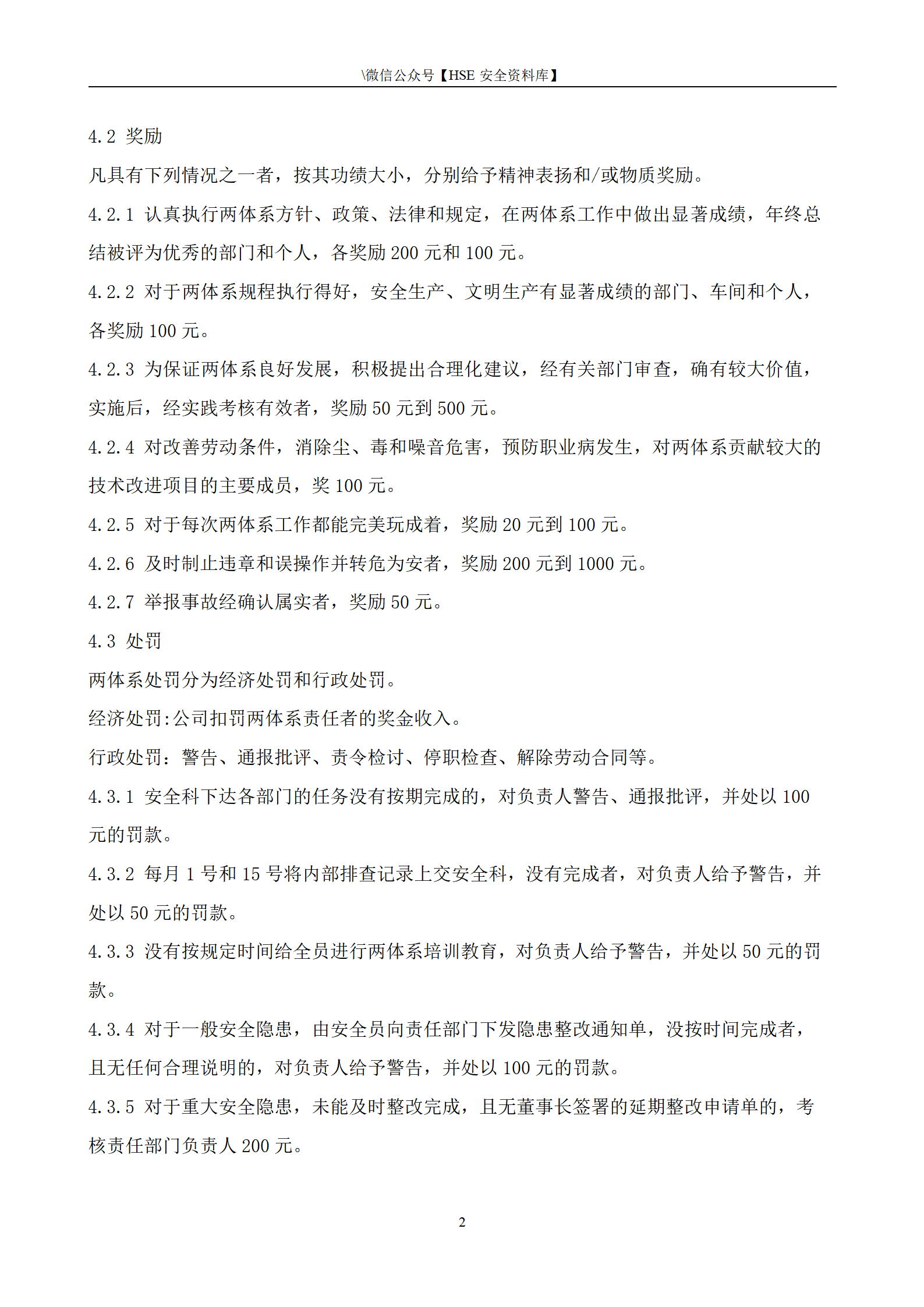 双体系系考核奖惩管理制度.doc