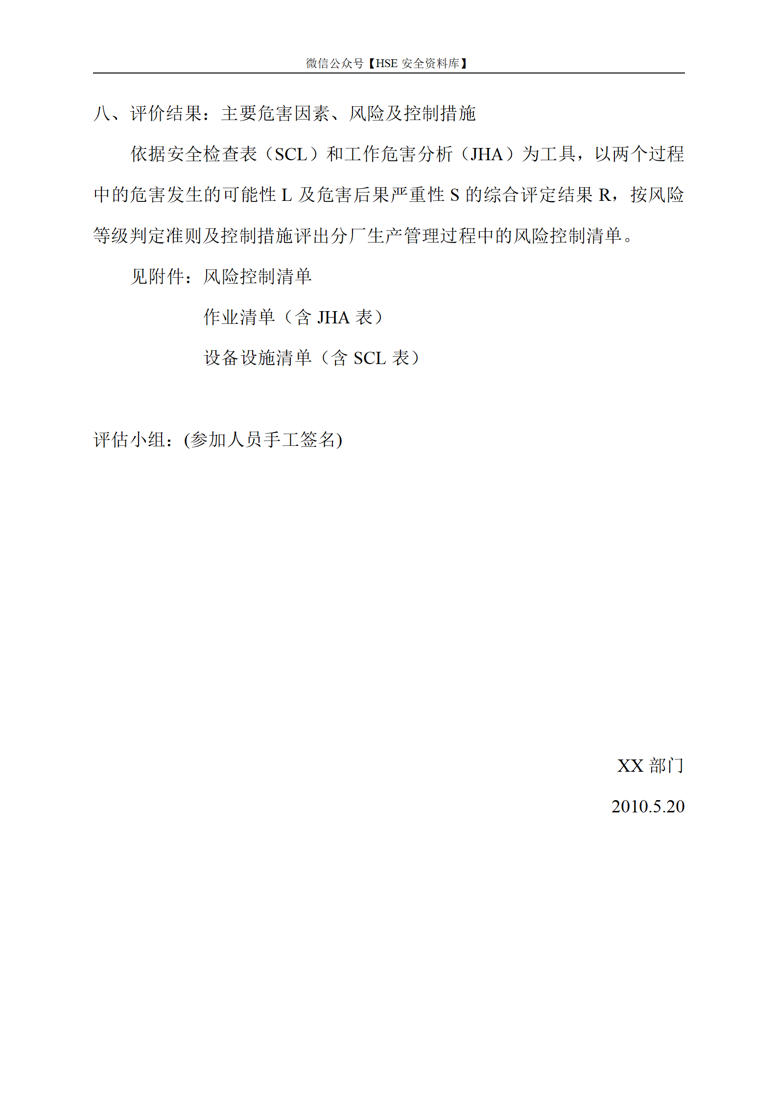 风险评价报告(JHA、SCL表)