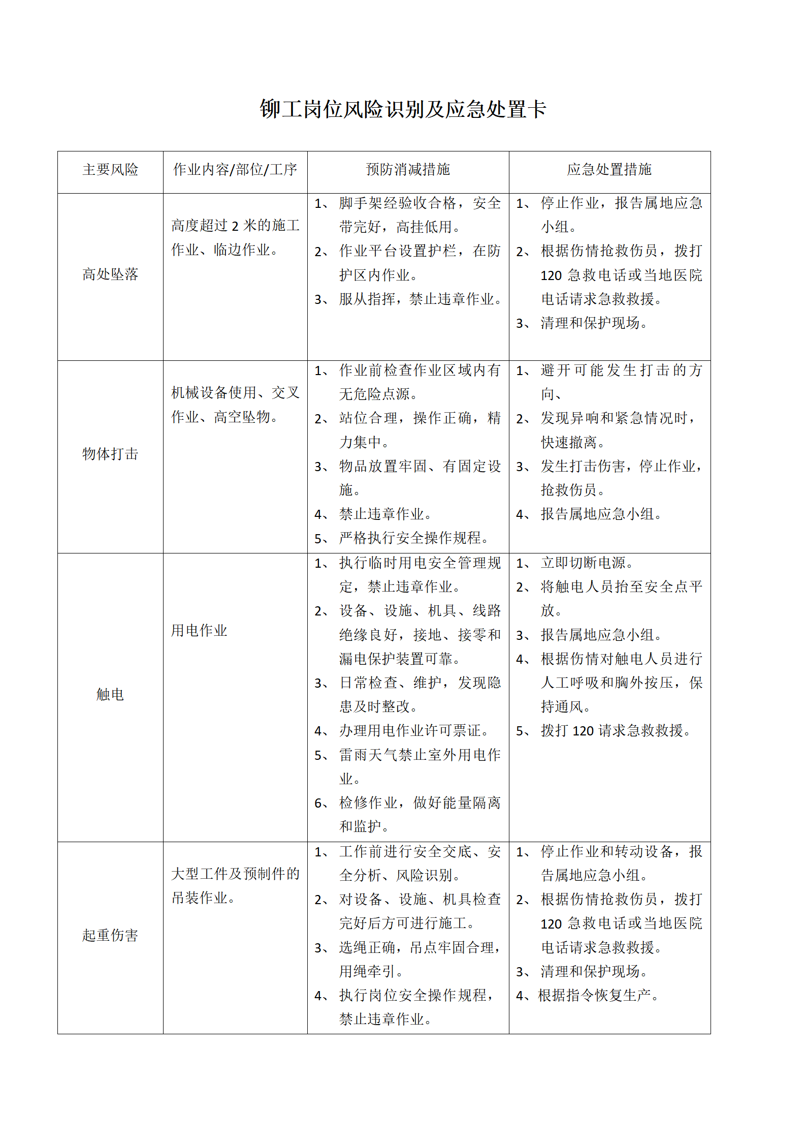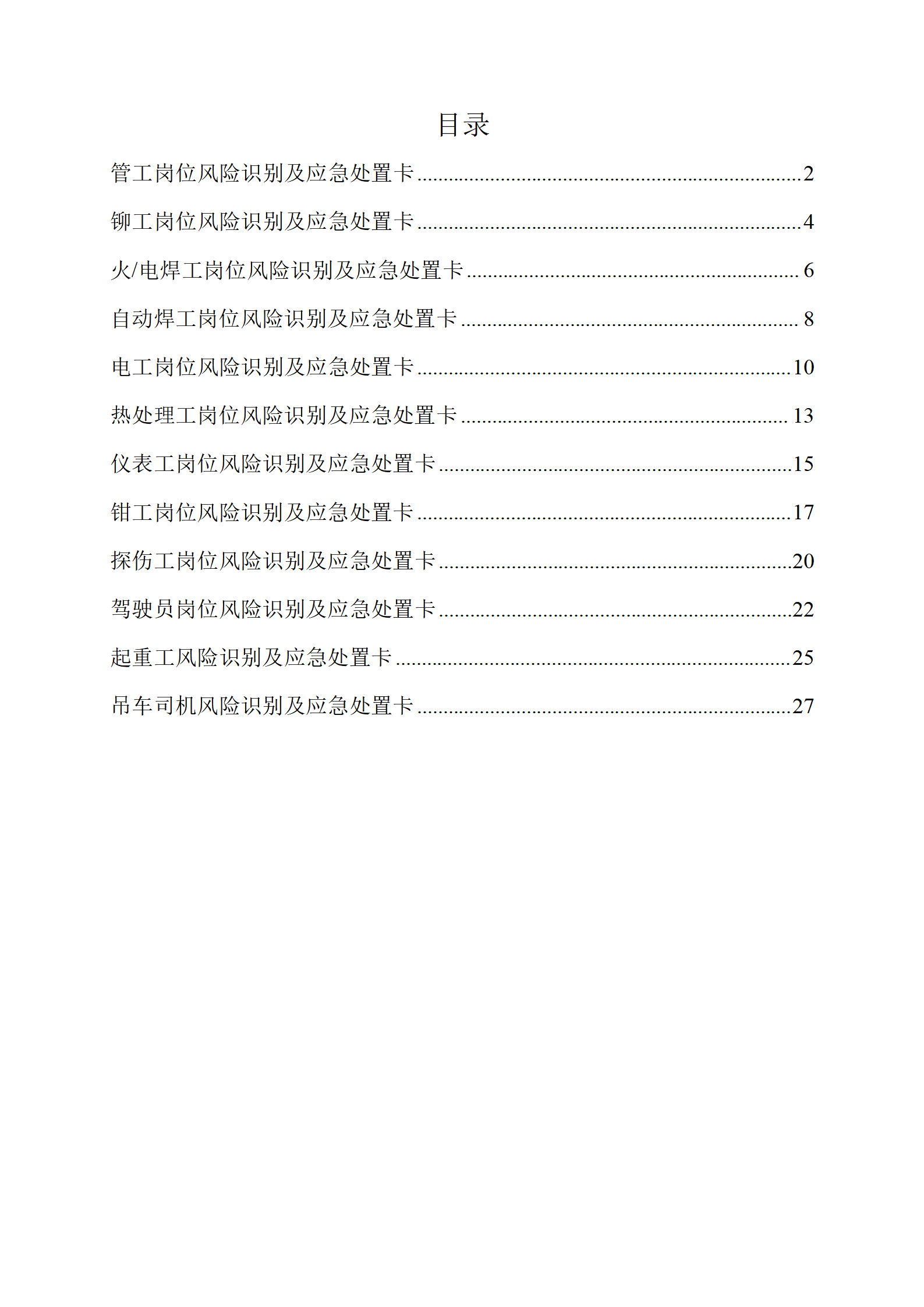 【处置卡汇编】各岗位风险识别及应急处置卡(全套,27页).docx