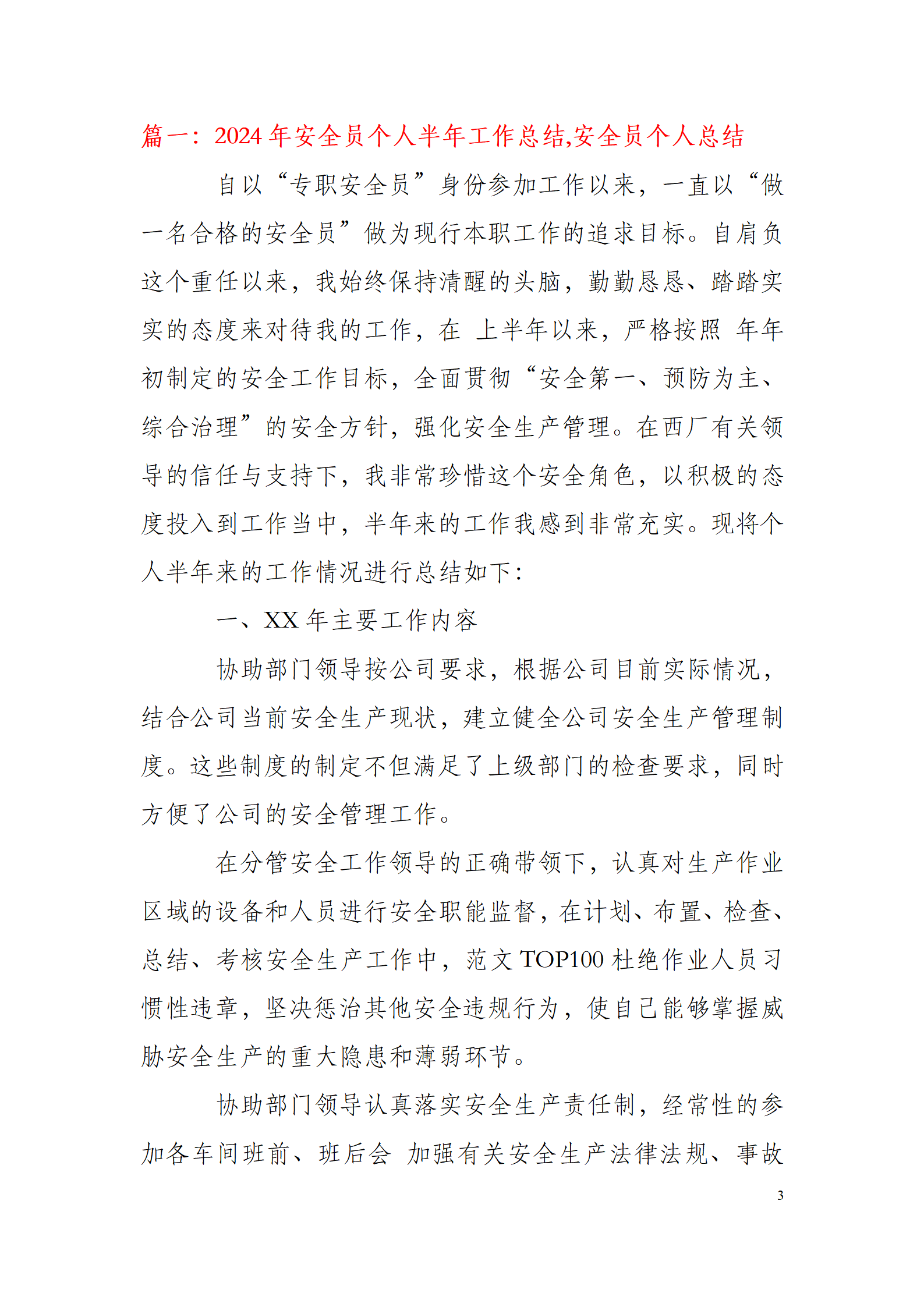 【模板】上半年安全工作总结及下半年工作安排汇编(32页).doc