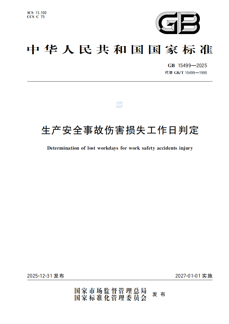 GB 15499-2025生产安全事故伤害损失工作日判定.pdf