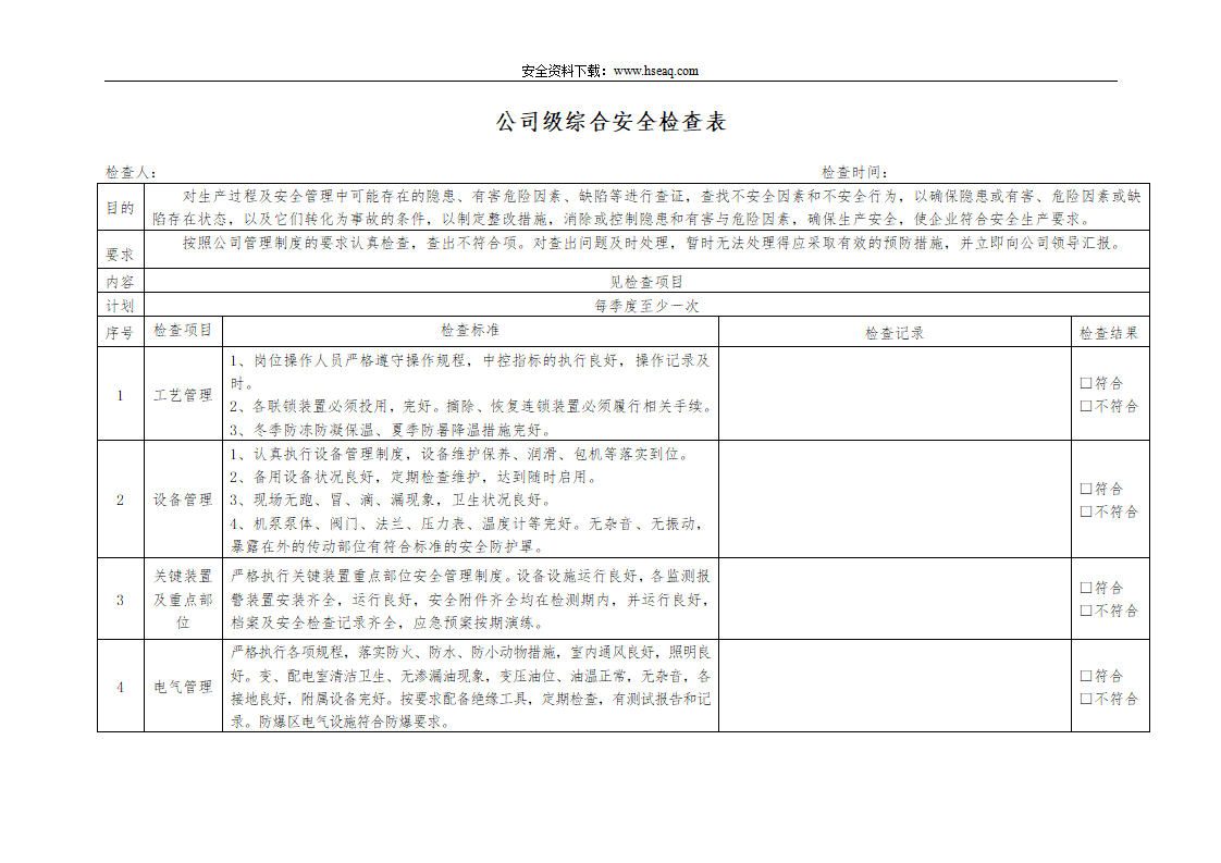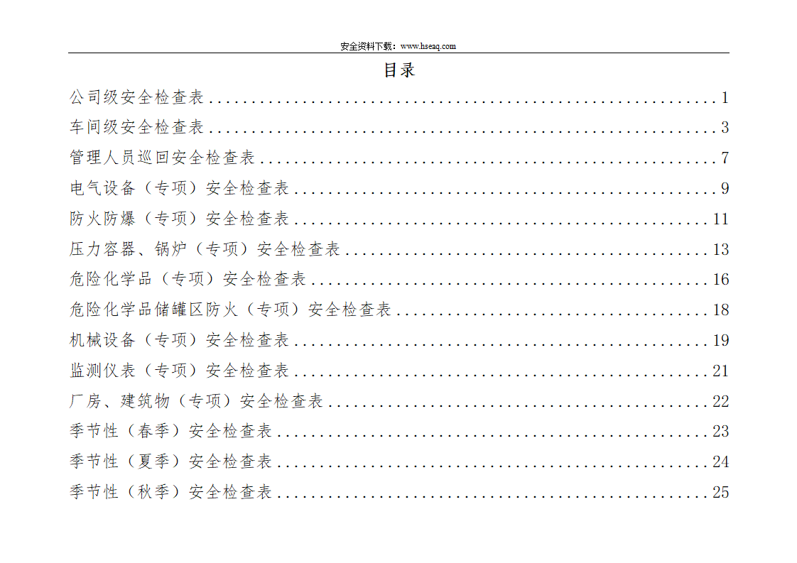 【27】企业综合、专项、日常、节假日、季节安全检查表汇编-通用模板.doc