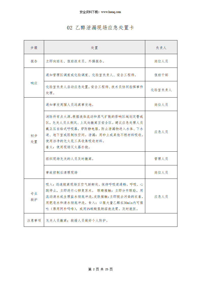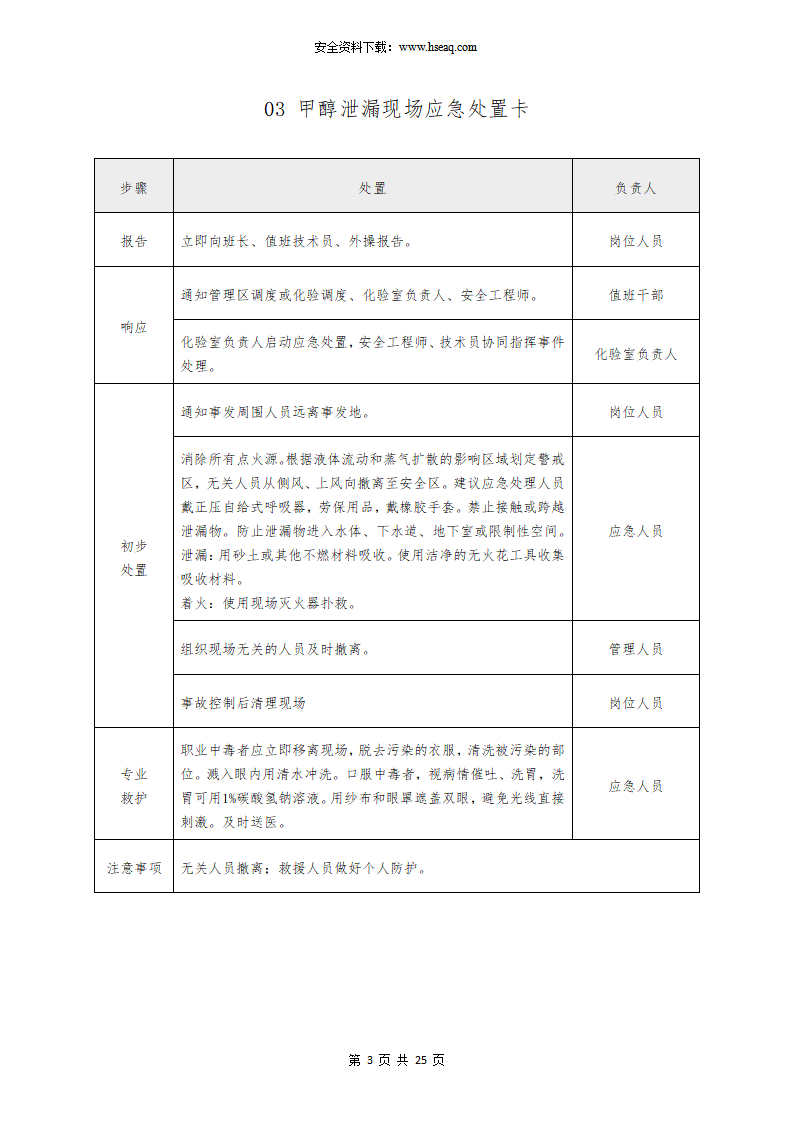 常见危险化学品泄漏现场应急处置卡(参考模版).docx
