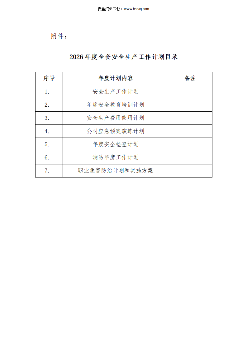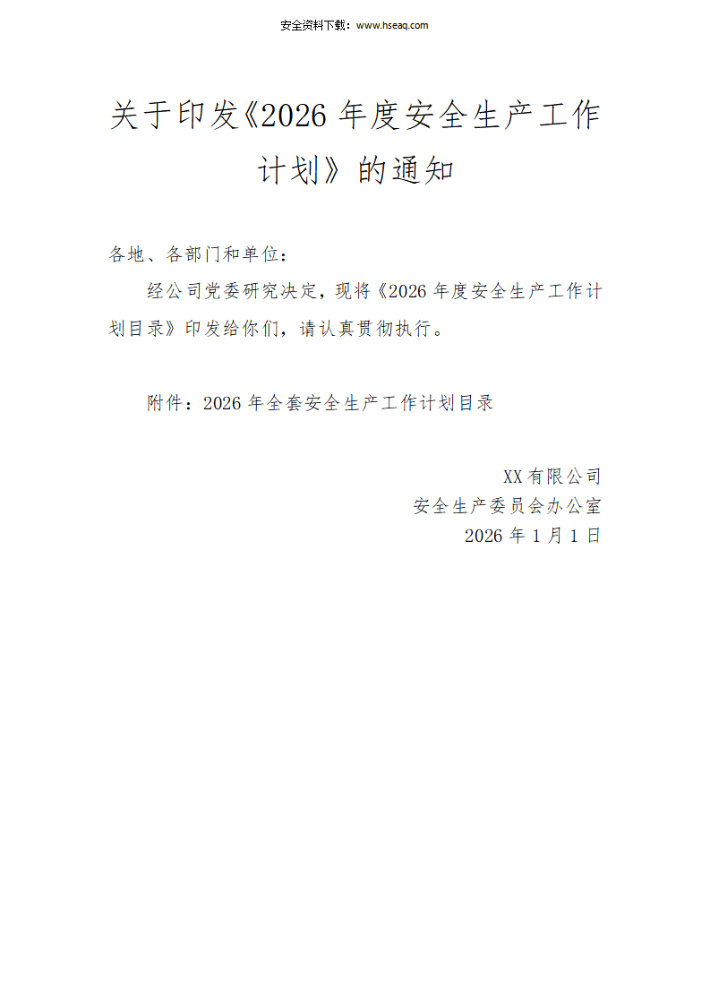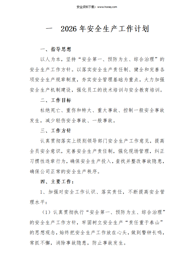 2026年度全套安全生产工作计划参考模板.doc