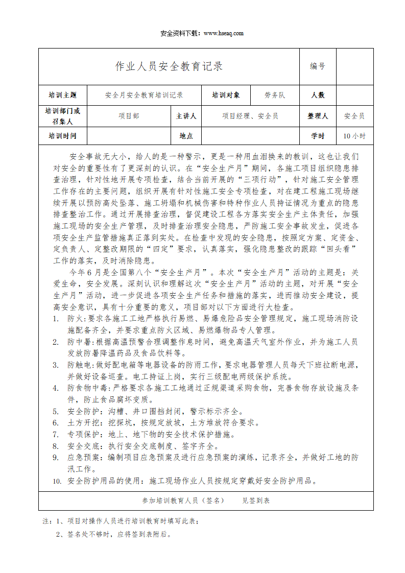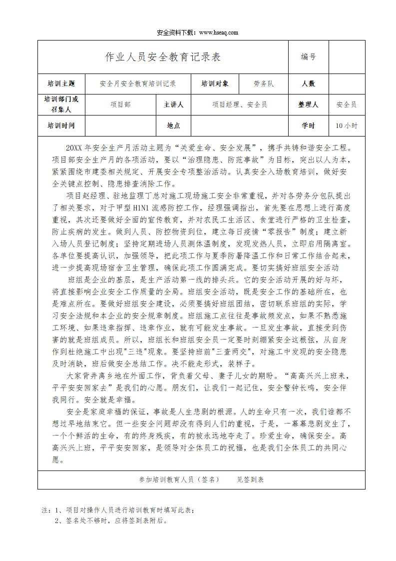2026年安全教育培训记录内容.doc