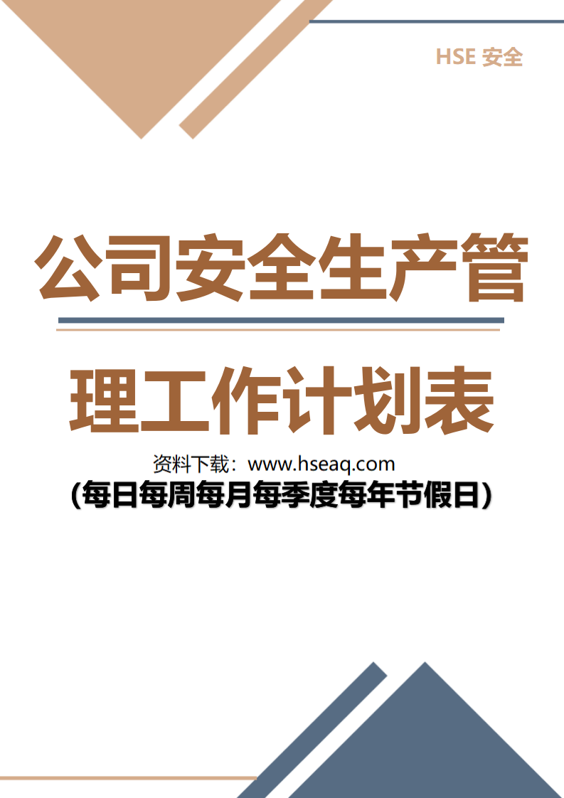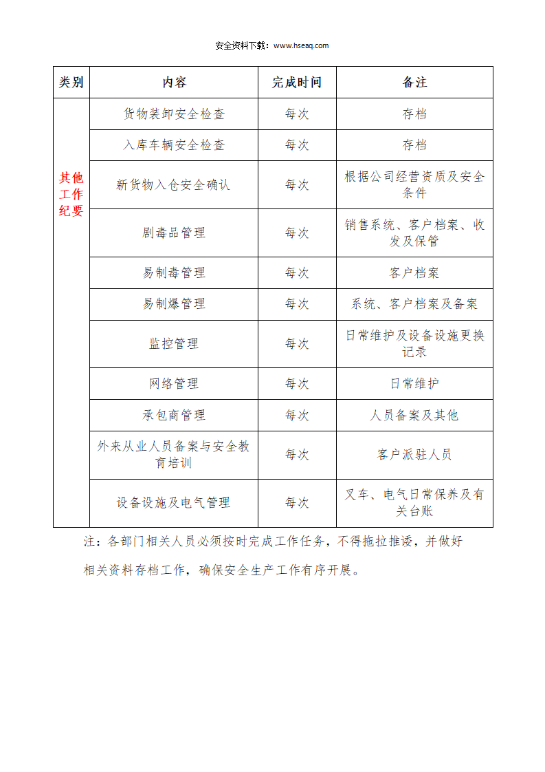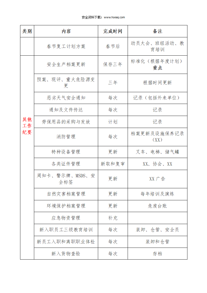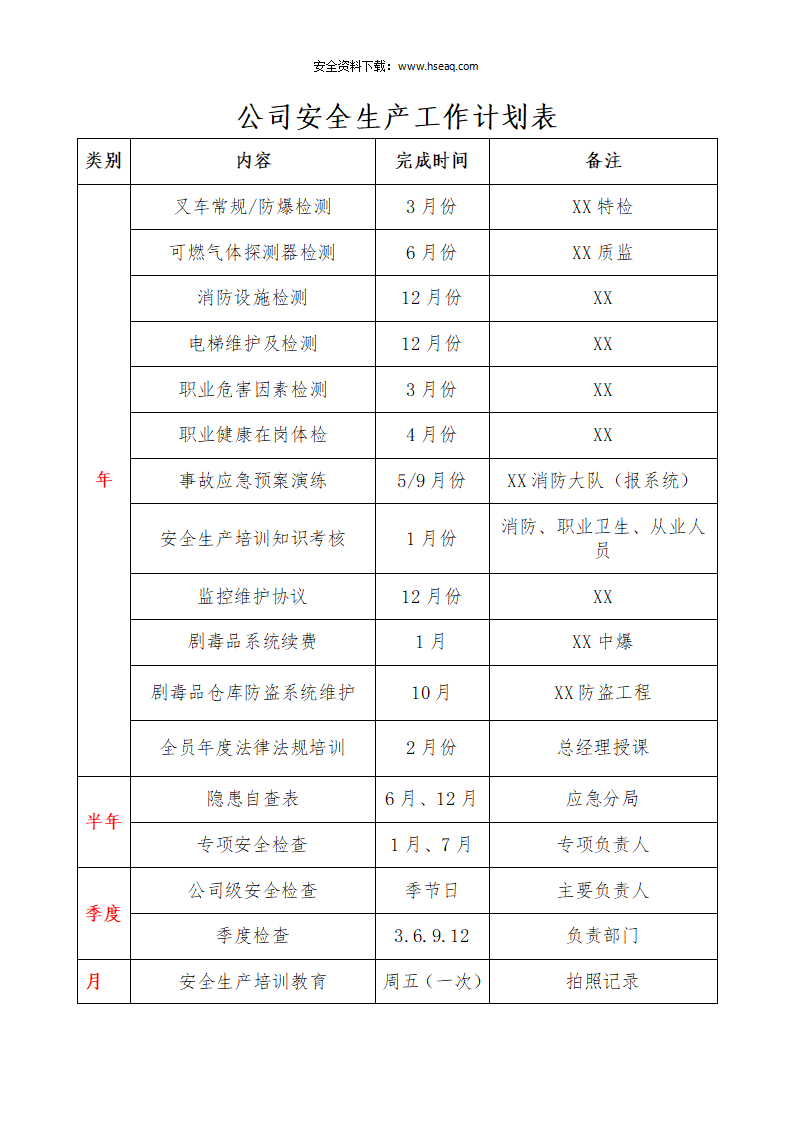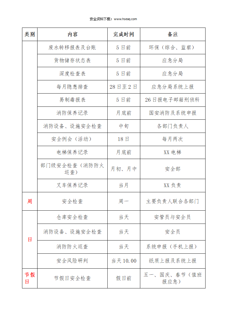 009公司安全生产管理工作计划表(每日每周每月每季度每年节假日).docx